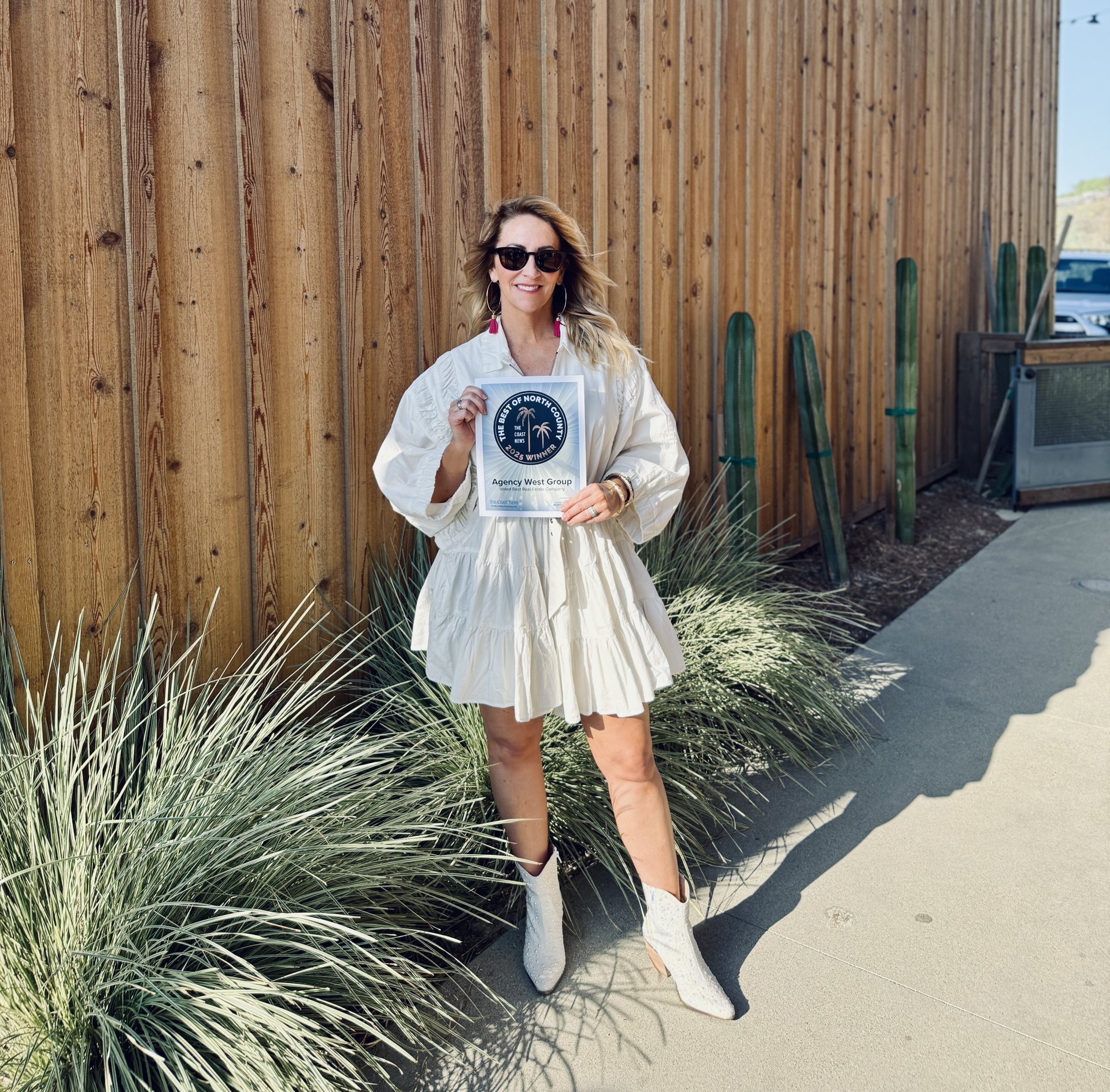Amy Ali, Founder of Agency West, receiving the 2025 “Best Real Estate Company” award from The Coast News Best of North County.